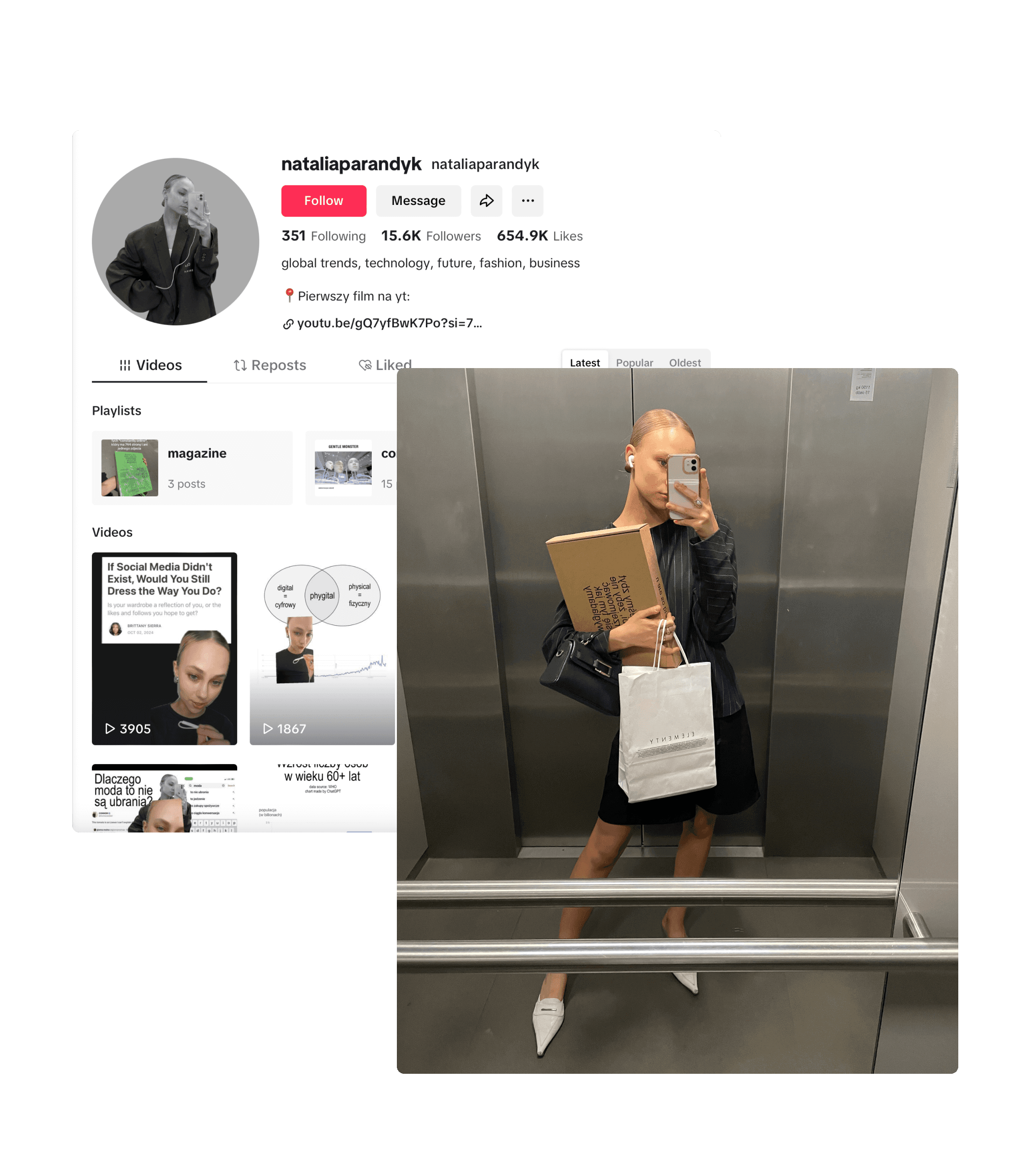Łączę modę, technologię i trendy. Swoim spojrzeniem na te obszary dzielę się na TikToku, Instagramie i LinkedIn. Jestem autorką projektu 7000 kcal, o którym mogłeś(aś) słyszeć na TikToku. Zebrałam 1000kg ubrań, które przekazują ważne historie i stworzyłam z nich instalację. O projekcie napisali: Noizz, Ofeminin, Wysokie Obcasy, Wyborcza, Interia.